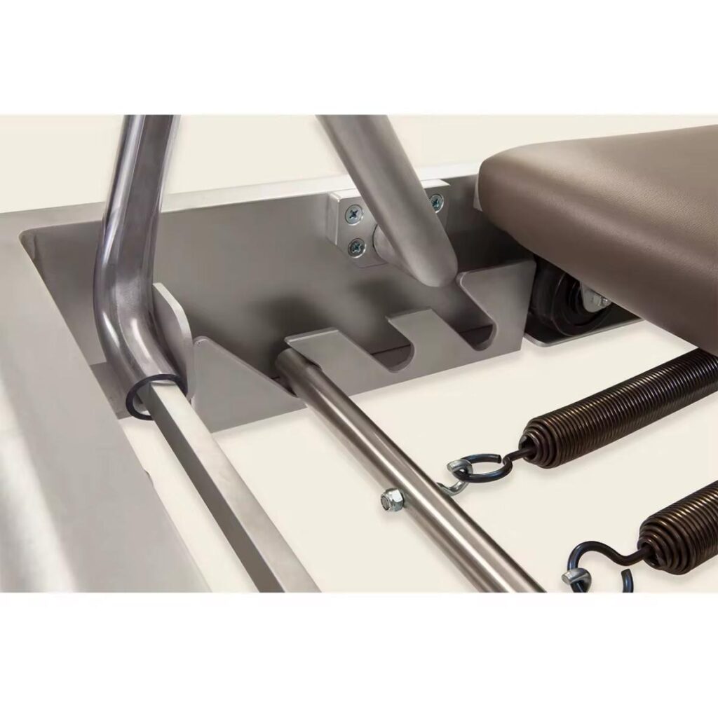 Ten model to ukłon w stronę tradycji – z konstrukcją opartą na klasycznych założeniach Pilatesa. Wykonany z aluminium, trwały i lekki, doskonale sprawdza się w codziennej pracy studia.