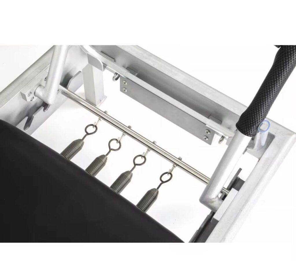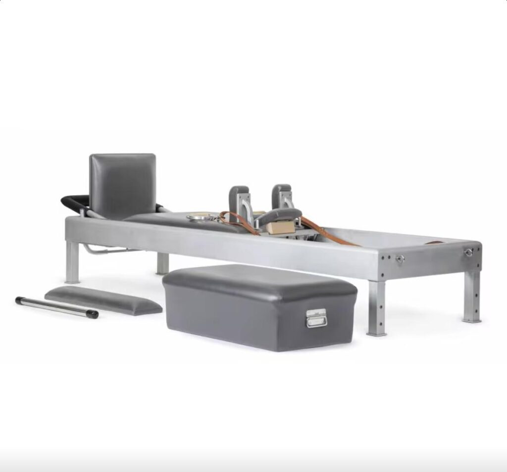 REFORMERY Pro Line Classical Aluminium Pilates Reformer KLASYCZNY REFORMERTen model to ukłon w stronę tradycji – z konstrukcją opartą na klasycznych założeniach Pilatesa. Wykonany z aluminium, trwały i lekki, doskonale sprawdza się w codziennej pracy studia.NAJWAŻNIEJSZE CECHY:Rama z anodowanego aluminium – stabilna, odporna na korozję i łatwa w utrzymaniu.4 sprężyny o jednakowym oporze – zapewniają równomierne obciążenie i przewidywalny opór.Nieruchomy footbar – stabilne, klasyczne ustawienie zgodne z oryginalną metodą.System jezdny na 8 kółkach – gwarantuje płynny i cichy ruch platformy.3-pozycyjny stopper – umożliwia regulację długości toru pracy.Tapicerka dostępna do personalizacji – odporna na ścieranie i łatwa do czyszczenia, dostępna w wielu kolorach.Skórzane paski – trwałe, komfortowe i przyjemne w kontakcie ze skórą, doskonałe do codziennego użytku.IDEALNY DLA:Studiów klasycznego Pilatesu, które pracują zgodnie z tradycyjną metodąInstruktorów ceniących prostotę i niezawodnośćPrzestrzeni, gdzie liczy się funkcjonalność, trwałość i łatwa konserwacjaDane techniczne:Wymiary i Waga:Długość: 243 cmSzerokość: 72 cmWysokość 72 cmWaga: 120 KgZestaw zawiera:– Reformer z 4 sprężynami o równym oporze – Box do ćwiczeń– Jump Board– Pad antypoślizgowy– Kijek– Strapy– Linki z cielęcej skóry– Drewniane uchwyty Gwarancja:Rama: 5 latPozostałe elementy: 1 rokCena netto 15 900,00 zł Cena brutto 18 450 zł Kolor tapicerki Select Kolor tapicerki Personalizacja koloru z naszej palety Dostawa i montaż Select Dostawa i montaż Bezpłatna Quantity Add To Cart Buy Now