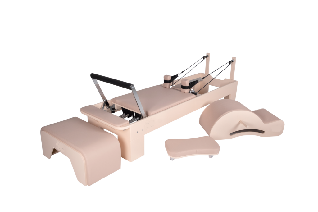 Pastelowy reformer klasy premium z drewnianą ramą i pełną personalizacją